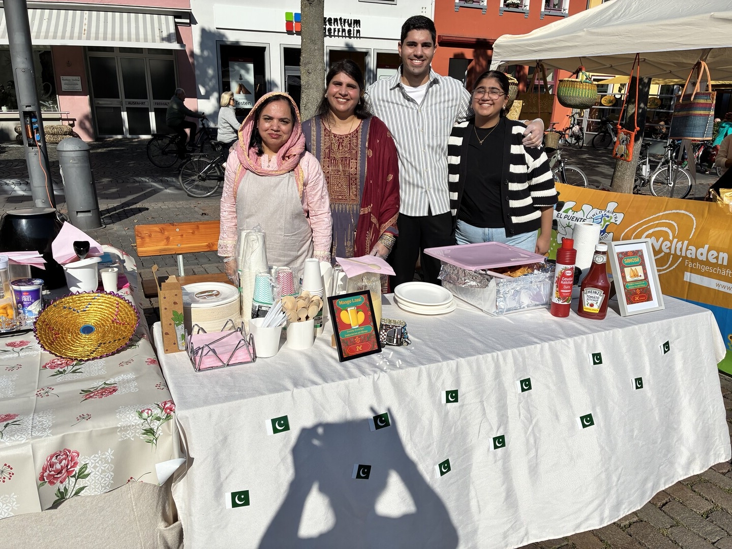Die Stände rings um den Markt boten exotische Gerichte aus 10 verschiedenen Ländern, von denen manche schnell ausverkauft waren, etwa indische Mango Lassi, polnisches Bigos, armenischer Kebab oder ukrainische Süßspeisen. Kinder tummelten sich an den Malständen, konnten puzzeln und Buttons herstellen oder Phantasietiere zu Brötchen backen.